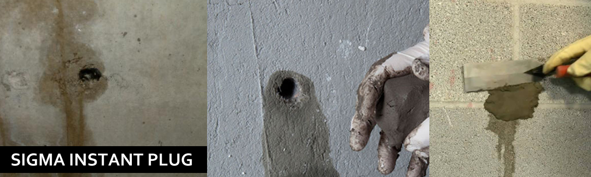 SIGMA INSTANT PLUG is a fast sealing cement based product formulated with selected additives. It sets very fast within a few minutes. It isused in a situation where very quick setting is required. It is effectively used for stopping the flow of running water. It is an ideal material to stop leakages prior to the application of waterproof renderings in basements.
